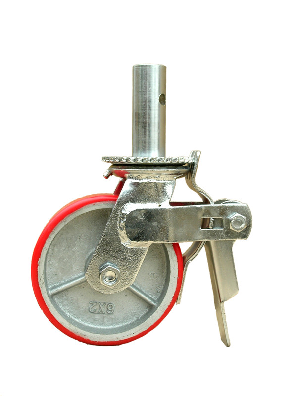 腳手架腳輪一般用的是6寸的輪子,規格與mm的計算是,1尺=20mm,6寸的輪子也就是說130MM,以其,腳手架的凈重,有4個輪子承重,依據輪子的材料而算的,一般用的輪子有4,寸,5寸,6寸和8寸。輪子的優劣,在于常用輪子材料的優劣,注塑加工特性的輪子,原包料不然再次用材價錢貴幾元。為其安全性無誤,最好是用性價比高的輪子。略微好點的輪子就是說聚氨酯腳手架腳輪,耐磨性能好。